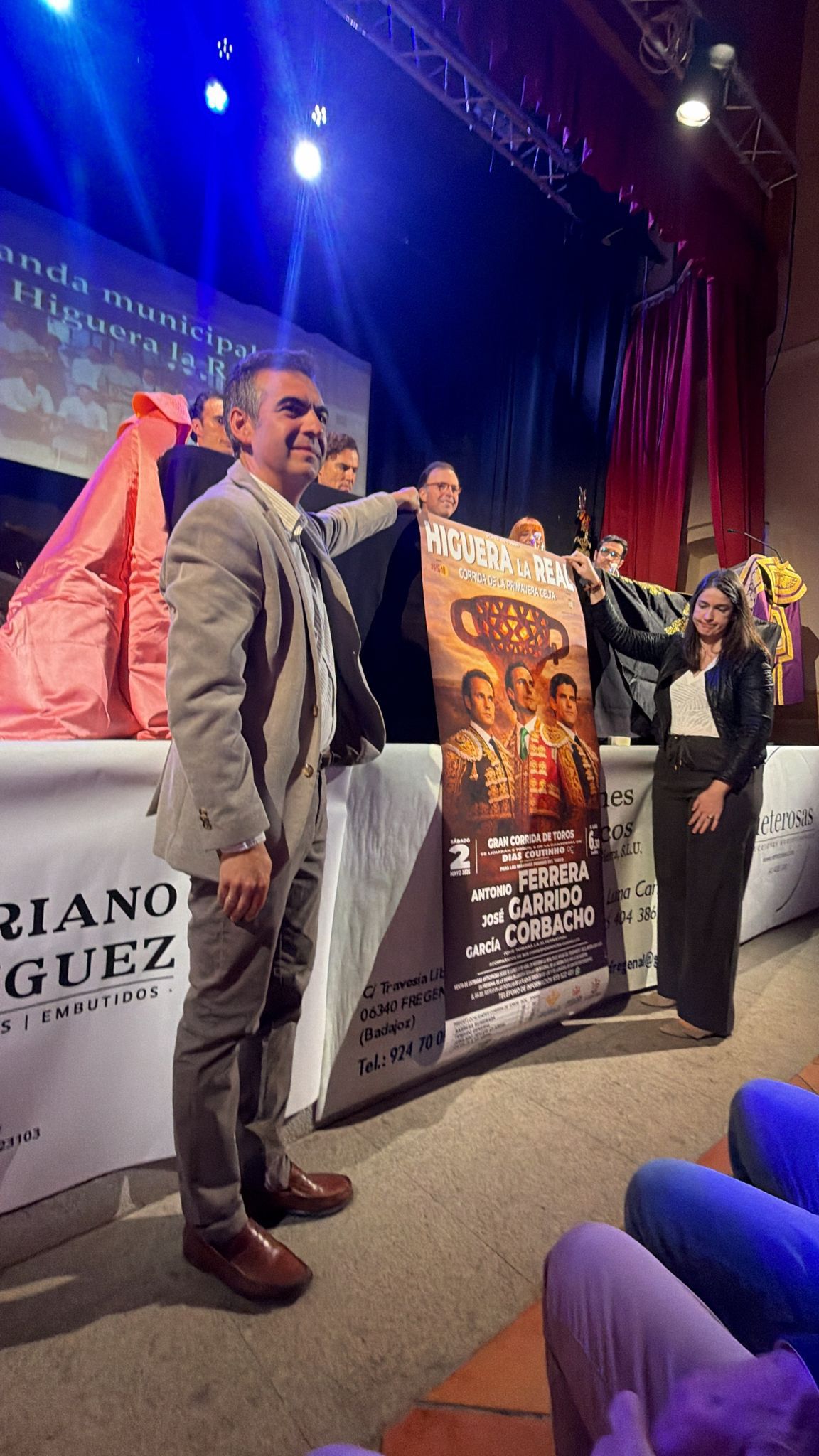 El evento tuvo lugar en el Teatro del Paseo del Cristo, contando con la intervención de Juan Ramón Luna Carretero, alcalde de Higuera la Real; Lourdes Linares Matito, diputada provincial; João F. Dias Coutinho, ganadero; Diego Ramos, matador de toros y cantante, y García Corbacho, novillero con picadores.